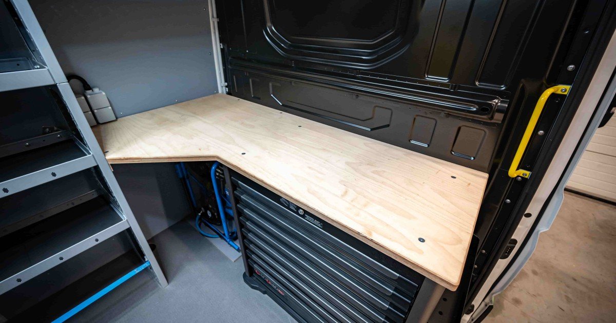 Dit specifieke beuken werkoppervlak is naadloos geïntegreerd in de rekken van het voertuig, waardoor de beschikbare ruimte optimaal wordt benut en een georganiseerde werkplek wordt gecreëerd. Steeds efficiënt te werk gaan, zelfs tijdens verplaatsingen met uw bedrijfsvoertuig, wordt hierdoor mogelijk gemaakt.